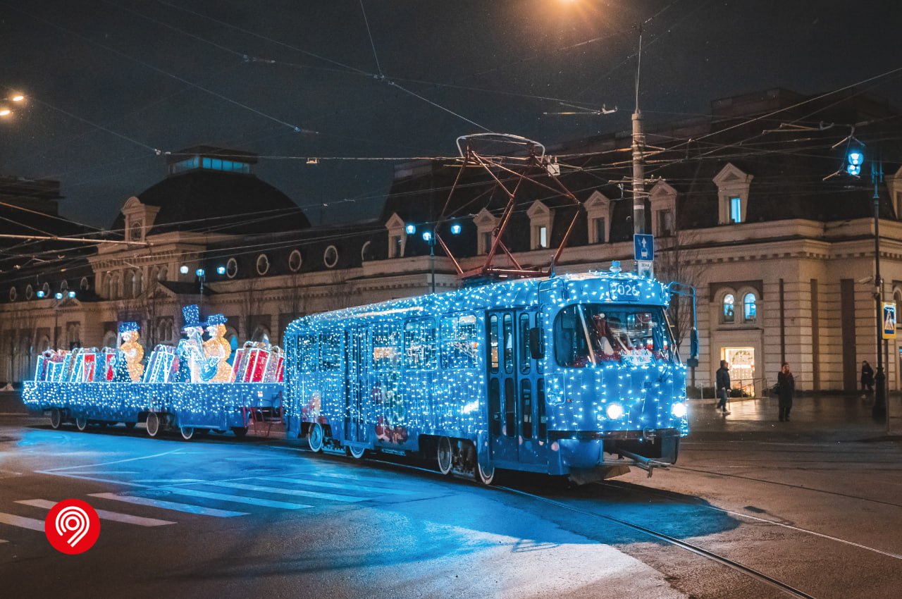 Столица погружается в новогоднюю сказку: на улицы города вновь вышел уникальный праздничный трамвай «Татра Т3».